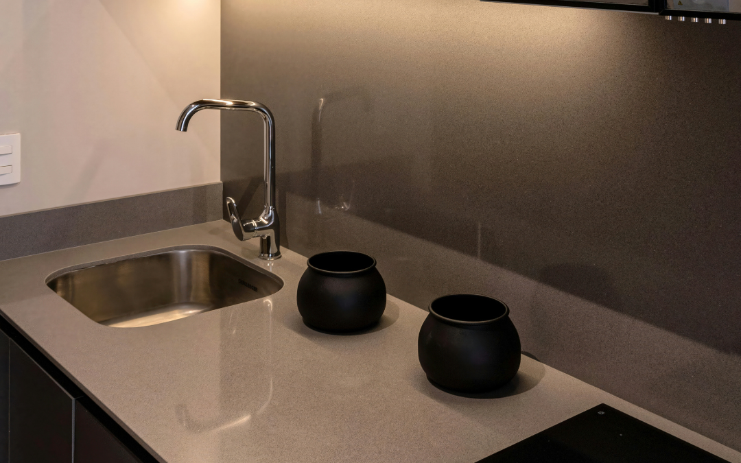 An increasingly popular benchtop material is engineered stone, a man-made product that was created in the late 1980’s. The main component is quartz (one of nature’s strongest minerals) which is mixed with resin or polyester base.